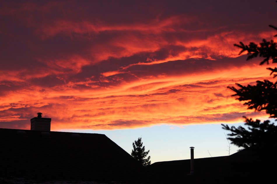 The Chinook winds of southern Alberta are a welcome sight to many, but maybe not all Calgarians. Flowing east off the Rocky Mountains, a highly visible wall of cloud, they bring with them a respite from the winter cold. A temperature hike of 20°C or more in just a few hours is common. Yesterday’s Chinook appearance was particularly stunning, captured here in splendid reds and oranges as the sun was setting. No Photoshop or other photo-manipulation software was applied to this image. The hues are real!