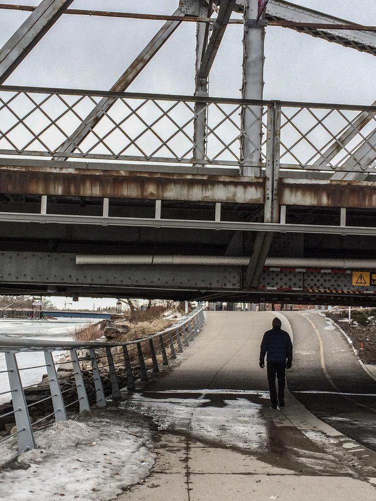 These photographs were taken in March 2014 while running along the Bow River in Calgary around the time of ice break up. They are coupled with a poem I wrote a few years back, on seeing homeless people hanging out underneath one of the bridges as I ran by.