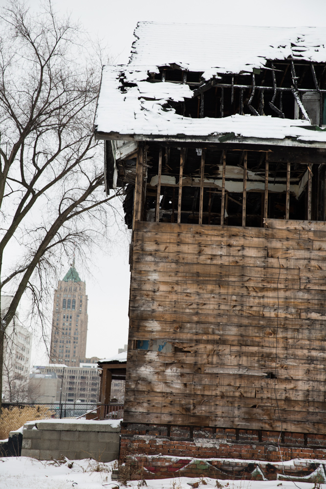 Three blocks away, almost in the shadow of that iconic Fisher Building, there is a movement happening, focused on bringing sustainable value to vacant lots. The location is the North End, where some elegant houses dating back to the late 19th Century still stand, spaced unnaturally apart. Some are inhabited. Others are derelict or now only show the remains of their foundations through the snow. Weighing up prospects, many of their owners walked away from them after failing to meet their payments on grossly devalued properties.
