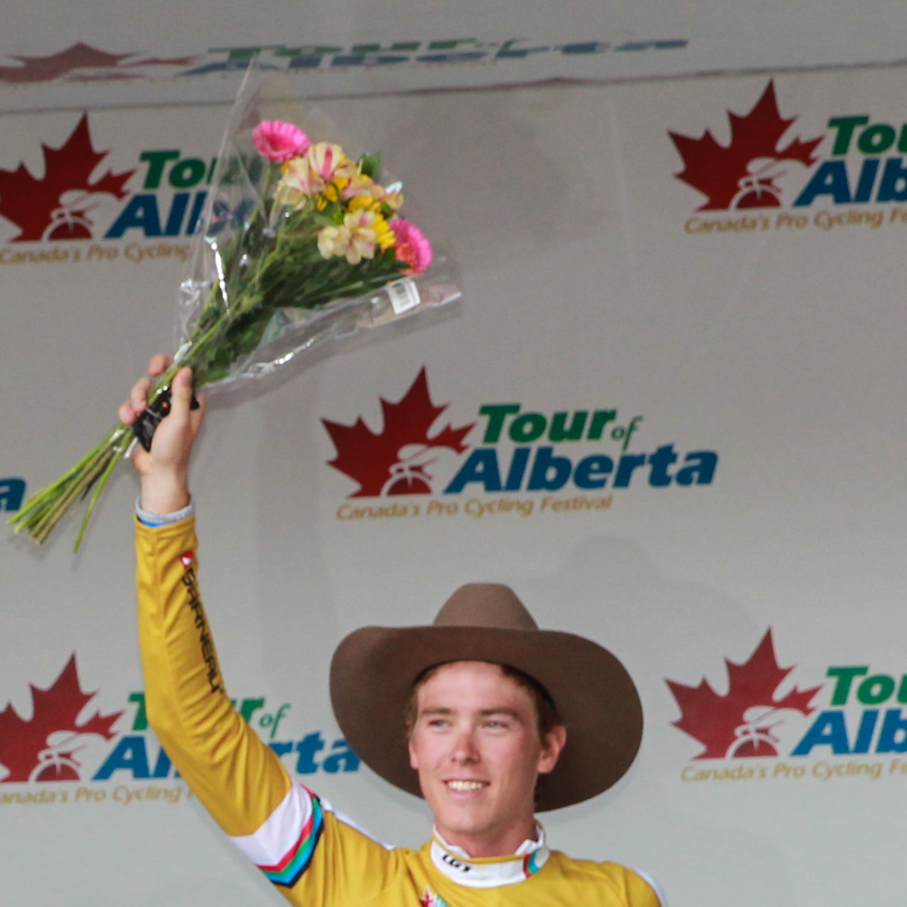 Dennis recorded the fastest time trial in the history of the Tour de France today. Earlier this year, he took the cycling One Hour record covering a distance of 54.491 km before being overtaken in subsequent attempts by British riders Alex Downsett and then Sir Bradley Wiggins. Back in 2013, Dennis was the General Classification overall winner of the inaugural Tour of Alberta, where he also took the Young Rider Award plus one of the coolest ever cycling prizes: a 65 million year old dinosaur bone for winning the Drumheller stage. Here is a photograph from his Albert Tour win.