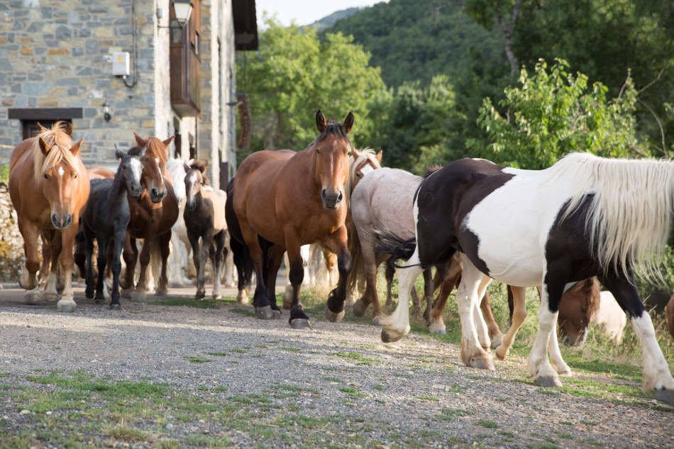 Cowboys and a herd of horses bearing bells were not foreseen in an evening spent in the Sierra de San Juan de la Peña, Spain in July. About two hundred horses came alongside Casa Martin, a beautiful and highly recommended Casa Rural (B&B), where we were staying, just south of Jaca in the foothills of the Pyrenees.