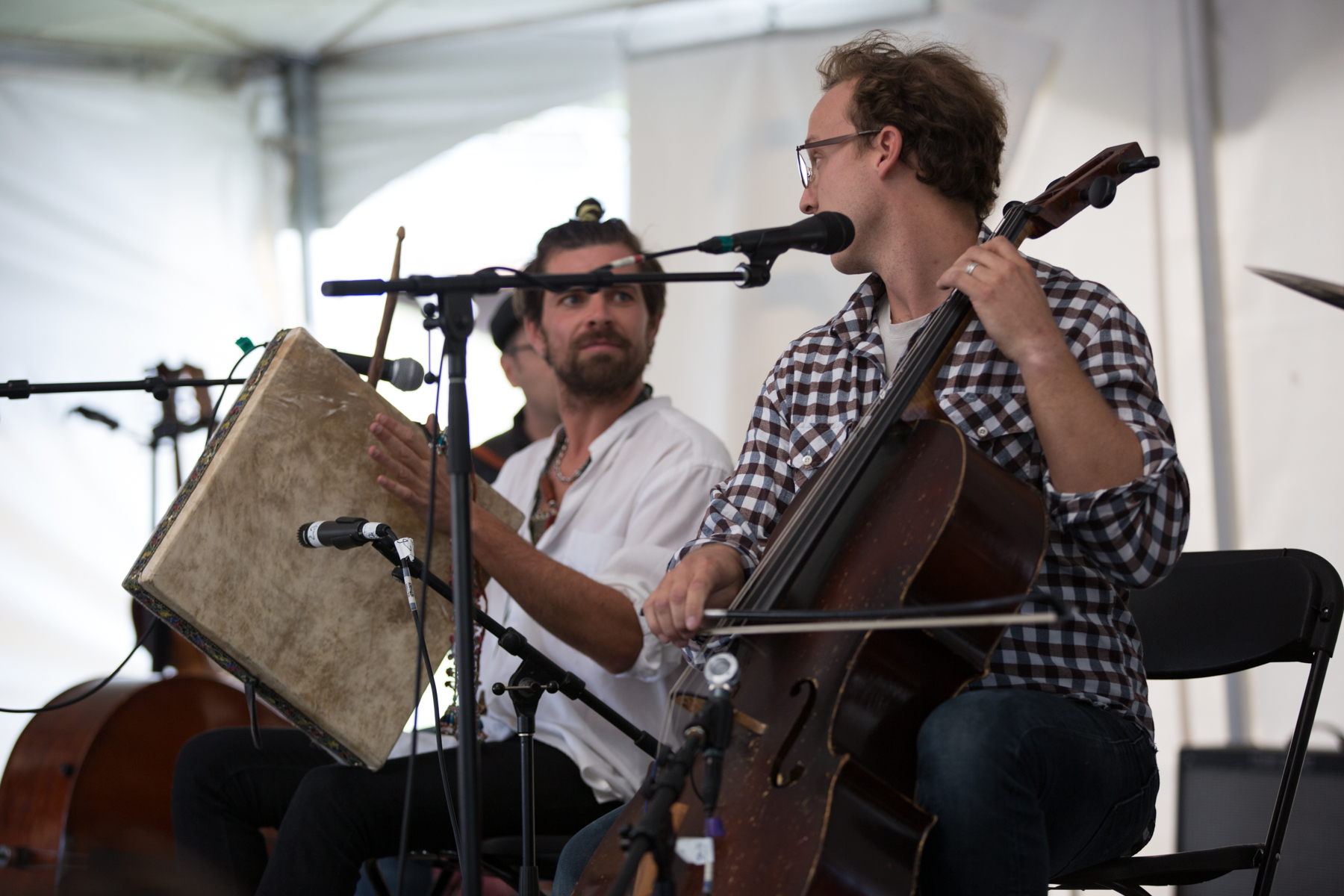 Ben Sollee performs in the solar powered FestivalHall, Calgary Folk Music Festival, July 26, 2015 © J. Ashley Nixon