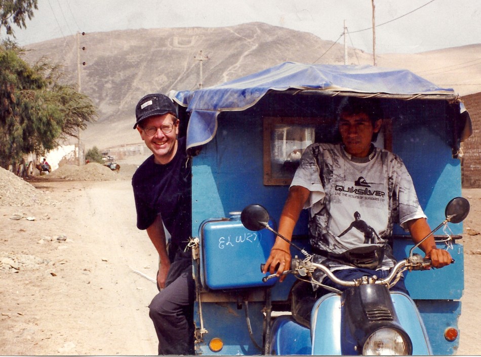 Ashley Nixon rides a motor taxi in Quebrada Verde, Lima, Peru © Maricarmen Nixon