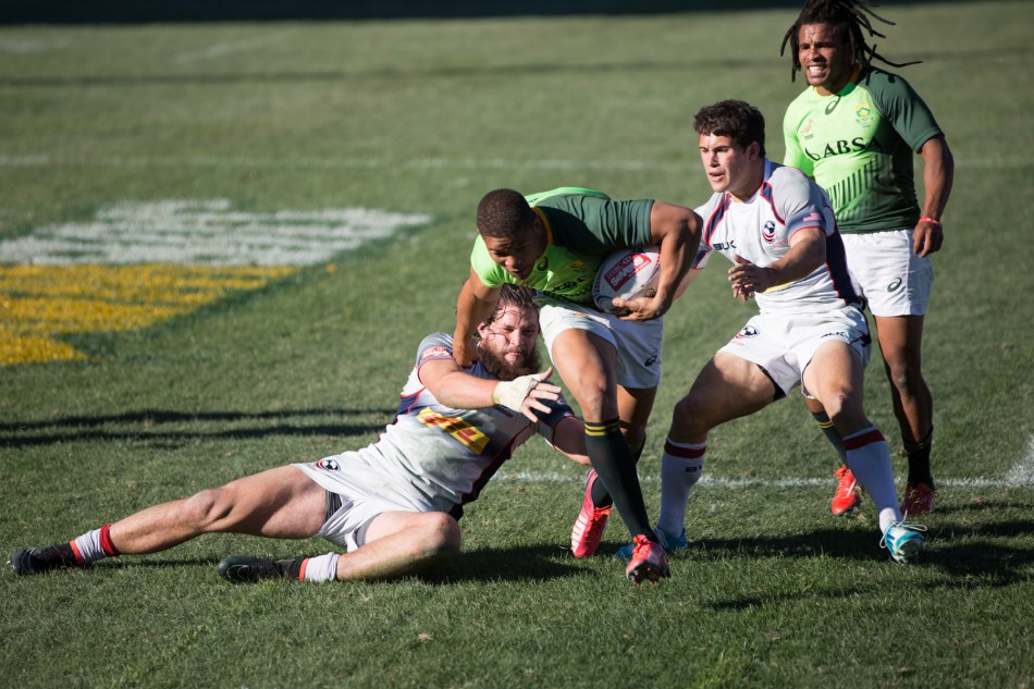 Team USA and South Africa in action in the World Rugby Sevens, Las Vegas, February 2015