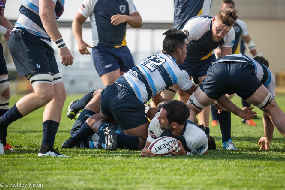 In sharp contrast, the Blues moved around some players and got their serious game face on. Marcello Wainwright put in a sterling performance at flank to score twice within ten minutes of the restart. Dan Moore ran in from the left wing for the Blues third try then Andrew Wilson scored after 34 minutes. Andrew Ferguson slotted in three conversions but, as he rushed through his kicking routine, missed his last one for Wilson’s second try in the closing minute of the game.