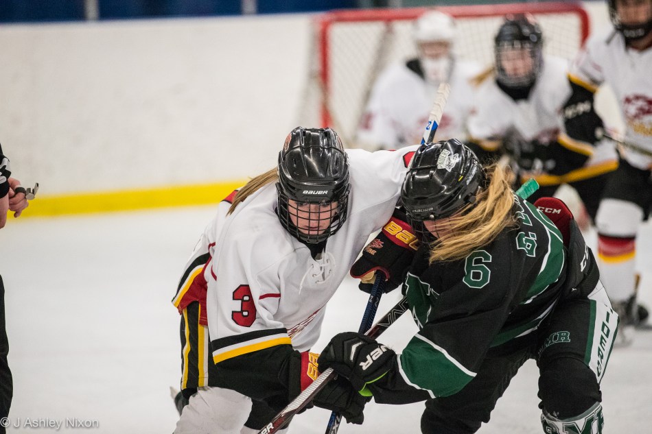 Just about a minute into the final period, Fire White used their player advantage carried over from a penalty to the Raiders at the end of the second period to slot the puck in the net. Asha Hanson got that one, assisted by Gracie Gilkyson and Mia Bierd from a shot out on the left boards that beat the goalie, Hali Lawrence blocker side. Three minutes later, Ella Kitchen, parked in her favourite place front of the net, tipped in a shot over the goalie’s sprawling left pad. An even-strength goal, her first of the season assisted by new gloves, stick and skate blades, as well as helpers from Gilkyson and Chyenne Risling. Looks like the Zombie Nation gloves have been retired!