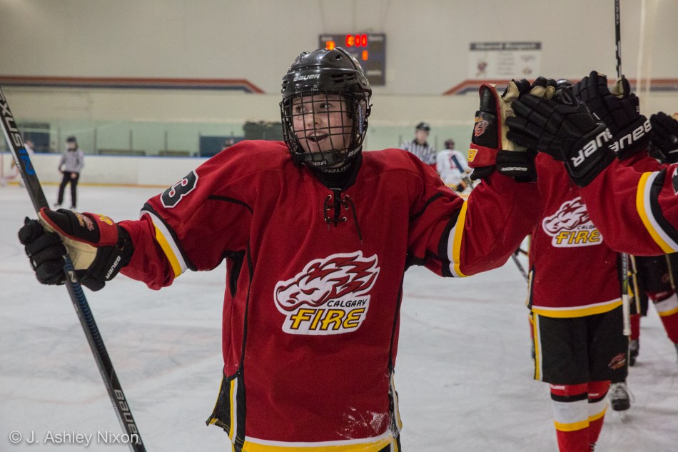 Good scheduling by the Alberta Female (Bantam Elite) Hockey League put the two top teams in the southern Alberta division against one another for the final league game of the season. Fire Red was on a roll with two wins already over the weekend. Conversely, Fire White had a late trip home the previous night after a defeat in Lethbridge.