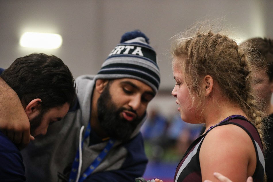 Madison also participates in track and field to increase her endurance and plays basketball. “It helps with the aggressiveness that is needed for wrestling”, she explained. Power to weight ratio is vitally important in wrestling, a sport where you are expending huge amounts of energy just to remain in position. So paying attention to diet is needed too. “I try to eat healthy most of time and snack to keep energy while at (wrestling) meets.”, she said. Madison, who weighs in at around 64-67 kg competed in the 72 kg class at the 2018 Wood Buffalo Alberta Winter Games held in February.