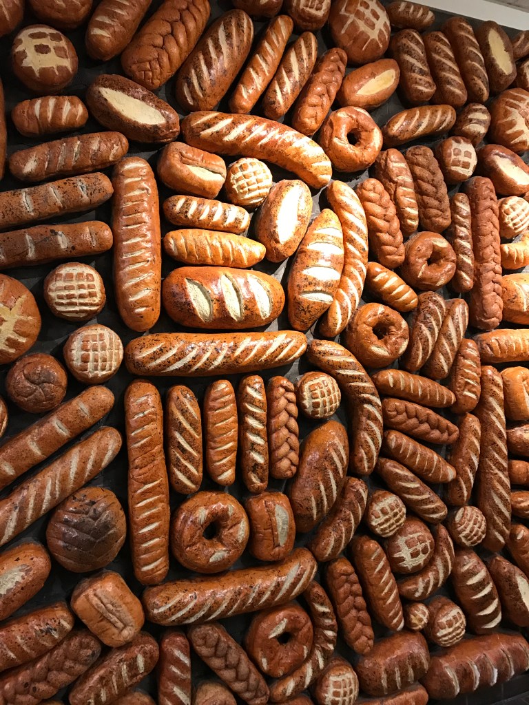 The clay work, entitled The Breadwall, was created by David Gilhooly, a California-born artist who spent some time teaching ceramics at the University of Saskatchewan. It was there that he advanced his ideas in funk art to challenge the seriousness of the art world and made a parody of ancient civilizations, politics, and culture through his FrogWorld project. This irreverent amphibian planet was populated with Egyptian kings such as FrogTut, and historical figures such as FrogWashington and FrogVictoria.