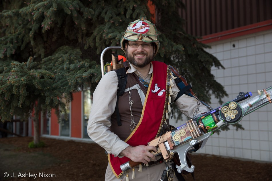 “I’m a Steampunk Ghost Buster. I joined the Calgary Steampunk Assemblage and I really wanted to stand out while still being true to both genres. I had an old Hoover vacuum sitting around and I thought to myself, I should make a proton pack. Get in with the Ghost Busters.”