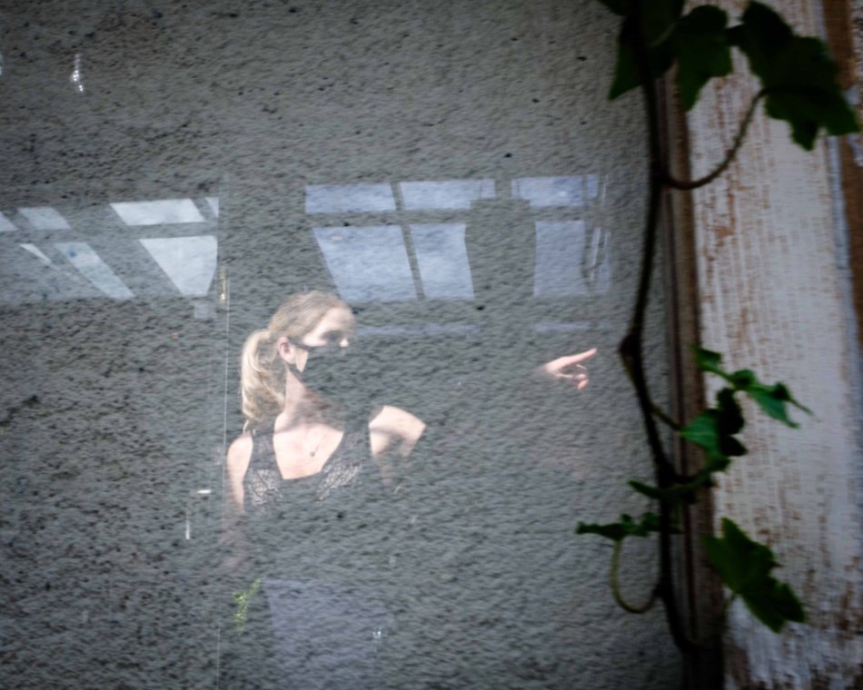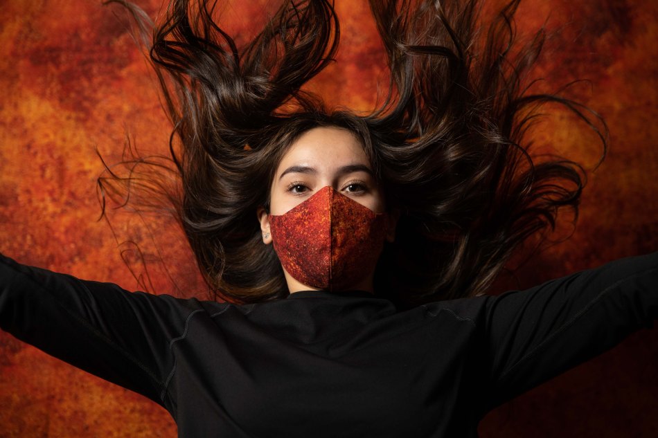 With strong, sewn support from Maricarmen, who applied her needlecraft talents to make a set of backdrops and masks, and Jennifer, who patiently posed through several studio sessions, I created images exploring how the COVID-19 pandemic has changed how we work, learn, and play.
