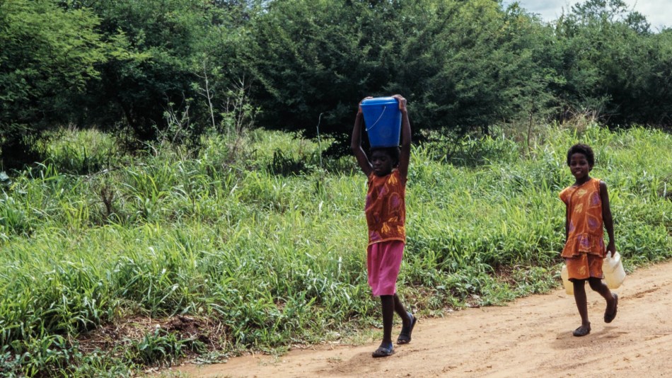 Leave no one behind. Children carry water to their home in Lochinvar National Park, Zambia, 1995. © J. Ashley Nixon