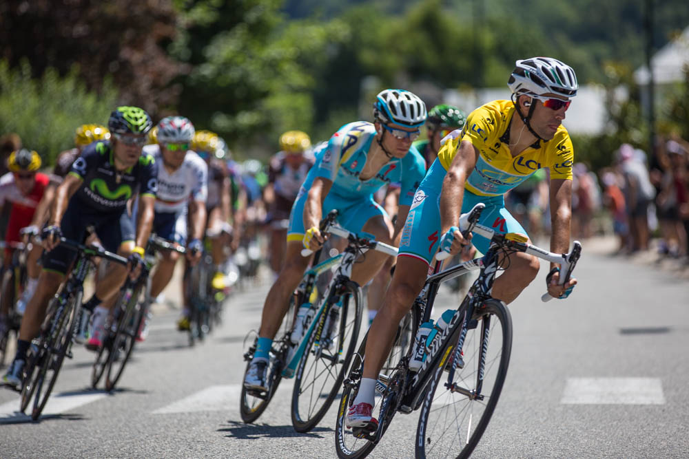 Vincenzo Nibali, winner of the 2014 Tour de France approaches Saint Mamet during Stage 17 in the Pyrenees, France, July 23, 2014. © J. Ashley Nixon