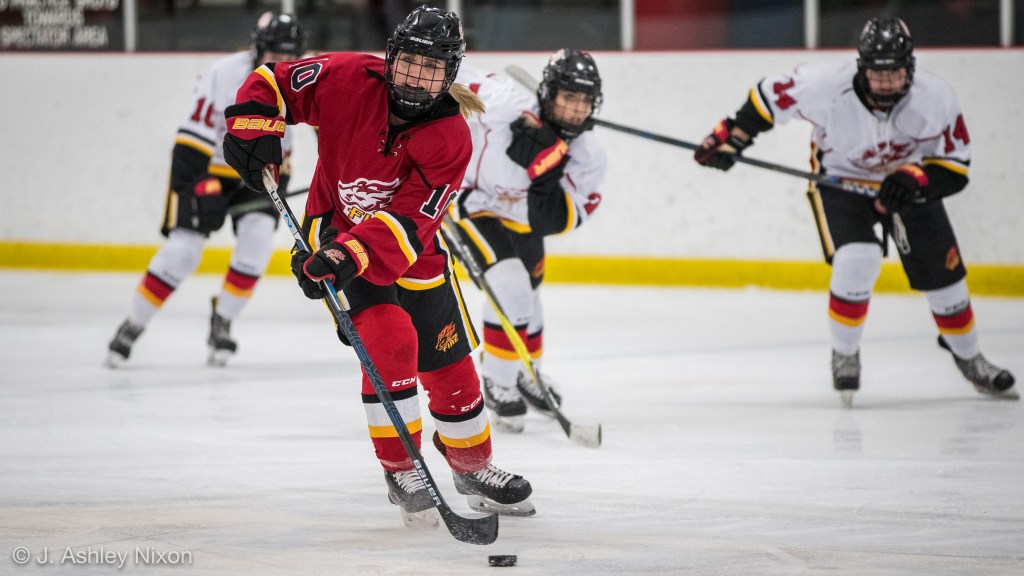 Rebecca Alloway, Calgary Fire White, and Sierra Whillans St. Albert Raiders progress through open ice in the direction of theContinue Reading