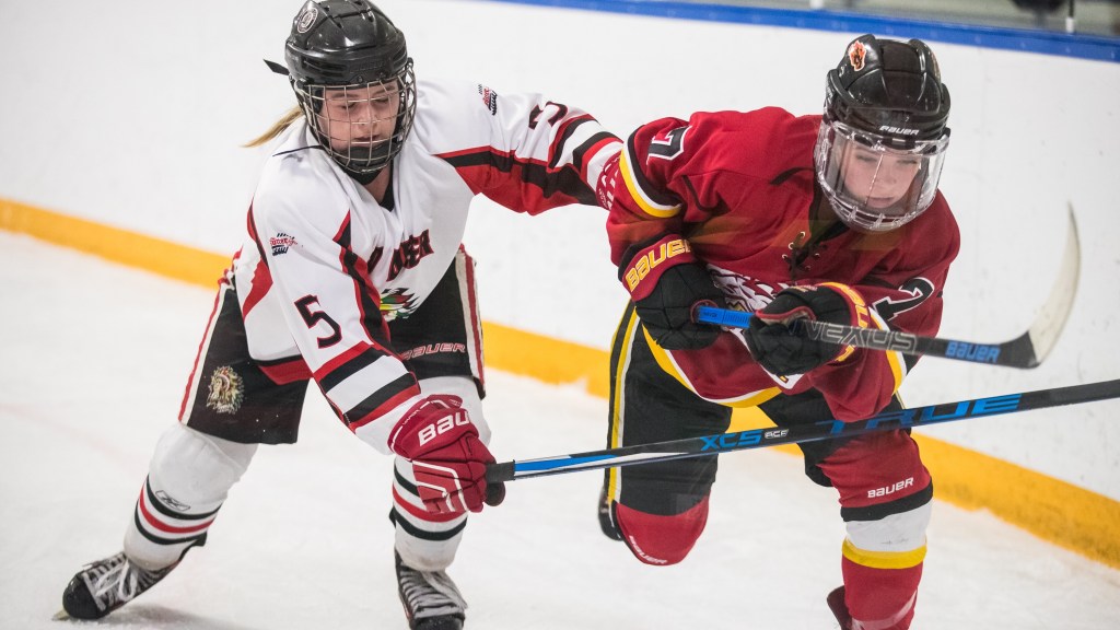 Sarah Gette, Red Deer Chiefs (in white) and Siobhan Sullivan, Calgary Fire Red compete for the puck during theirContinue Reading
